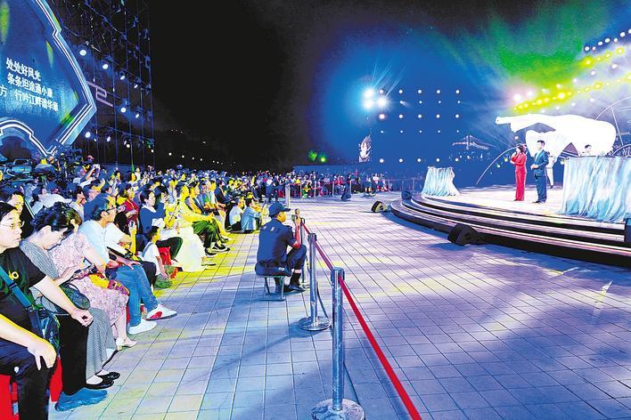 当“江ch奇:米茂的狩猎”在天空中引起共鸣时,火焰像舞台上的红龙一样爆炸,改变了D的令人兴奋的辉煌令人兴奋的辉煌的“雕刻拱门的雕塑拱门”。 “男孩静静地告诉我,我们随着时间的流逝旅行。”带孩子们看戏的父亲说,他感到数千年的文化遗产通过表演流过湖河,这令人震惊。