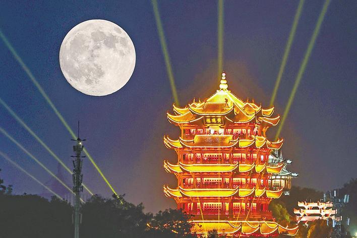 10月6日晚上,在总理的节日期间,乌汉(Uhan)的黄色起重机塔悬挂着明亮的月亮。这是非常诗意的。 (注意:这些照片是使用多个展览在网站上拍摄的。