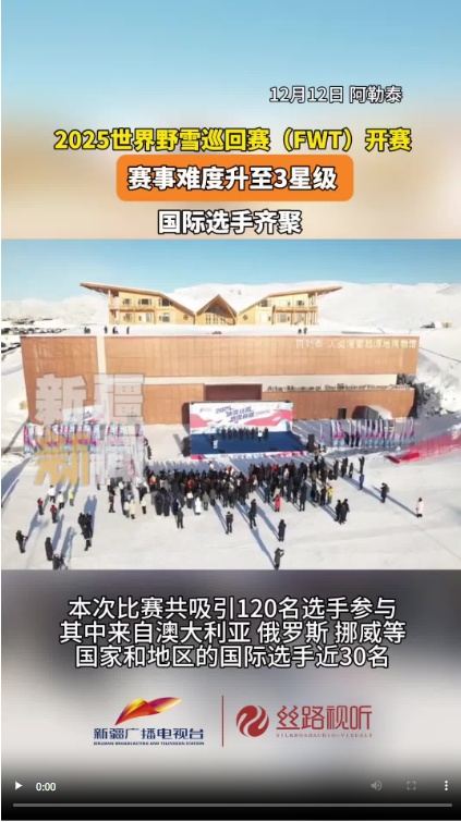 2025年12月12日,世界冰雪巡回赛(FWT)连续第三年在新疆阿尔泰孜库普林国际滑雪场开幕。